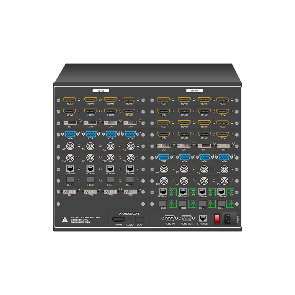 | 场景切换 | 快速切换、一对一切换、一对多、一对所有、多对多。掉电记忆存储,轮询切换,自动切换,场景存储,场景调用【配合软件可实现最多9999组场景模式】部分功能需要搭配控制系统或者PC软件实现。 |